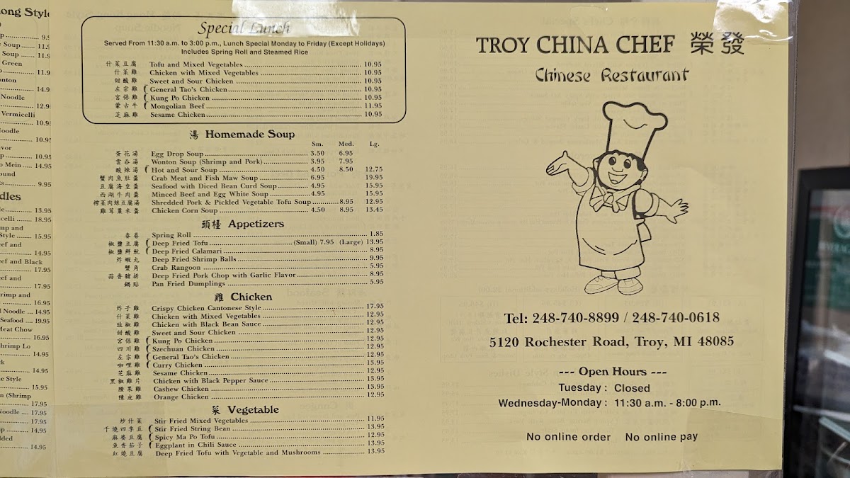 The menu at China Chef offers a comforting selection of authentic Chinese dishes, blending traditional flavors with generous portions. It leans toward hearty, satisfying meals that work well for casual lunches, family dinners, or takeout on a busy night.